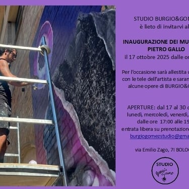 Inauguriamo il murale che Pietro Gallo ha realizzato sulle pareti esterne dell'edificio. Con l'occasione sarà allestita una mostra con tele e opere recenti dell'artista.